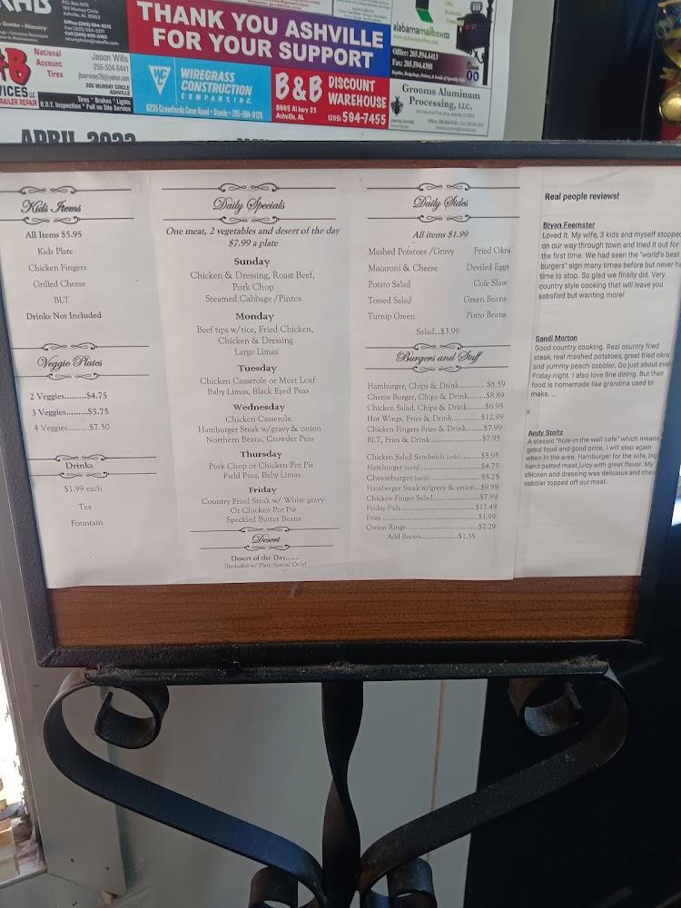 Welcome to Two Sisters Homestyle Cafe, your cozy spot in Ashville, AL, where delicious homestyle cooking meets a welcoming atmosphere. Located at 77 7th Ave, we offer a diverse menu featuring hearty breakfasts, satisfying lunches and delightful dinners at wallet-friendly prices. Enjoy our excellent coffee and a vast selection of teas, perfect for dining solo or with friends. With accessible facilities, outdoor seating, and fast service, we cater to everyone. Whether you're here for a quick bite or a leisurely meal, our friendly staff is ready to serve you. Join us for a taste of comfort and community!